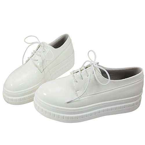 -. Feature : カジュアルで履き心地の良いカジュアル厚底シューズです。 / 光沢のあるPU、お洒落なレースアップ、どんなスタイルにも合わせやすいデザインです。 / ソールも5.5cmと高過ぎず疲れません。 / 色はホワイト/ブラックからお選び頂けます。 / 【ソール】約5.5cm ※ソールに小さな傷やシミなどある場合が御座います。ご了承下さい。