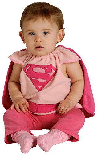 -. Binding : Apparel -. Brand : Rubie's -. ClothingSize : One Size Fits Most -. Color : Pink and Hot Pink -. Department : baby-girls -. Feature : Pink P.R.Inted bib and cape / Supergirl logo / Officially licensed / Let's even the youngest member of the family dress up / Look for Supergirl and Superman costumes in sizes and styles for the entire family -. Genre : Superheroes/Villains -. IsAdultProduct : 0 -. Label : Rubies Costumes-Apparel -. Manufacturer : Rubies Costumes-Apparel -. MPN : 885105N -. PackageQuantity : 1 -. PartNumber : 885105N -. ProductGroup : Apparel -. ProductTypeName : BABY_COSTUME -. Publisher : Rubies Costumes-Apparel -. Size : One Size -. Studio : Rubies Costumes-Apparel -. Title : Rubie's Costume Co Baby Girl's DC Superheroes Supergirl Deluxe Bib