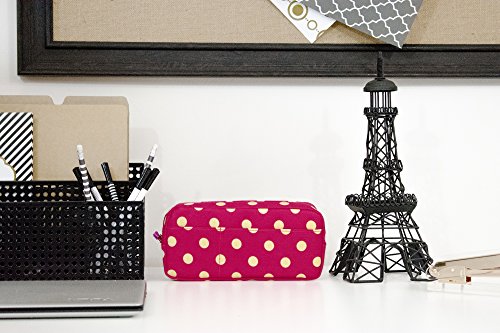 Blue Monaco Cute Pencil Case for Girls - Pen Pouch - Makeup Bag - Pink with Yellow Polka Dots - 8 Inch By 4 Inch