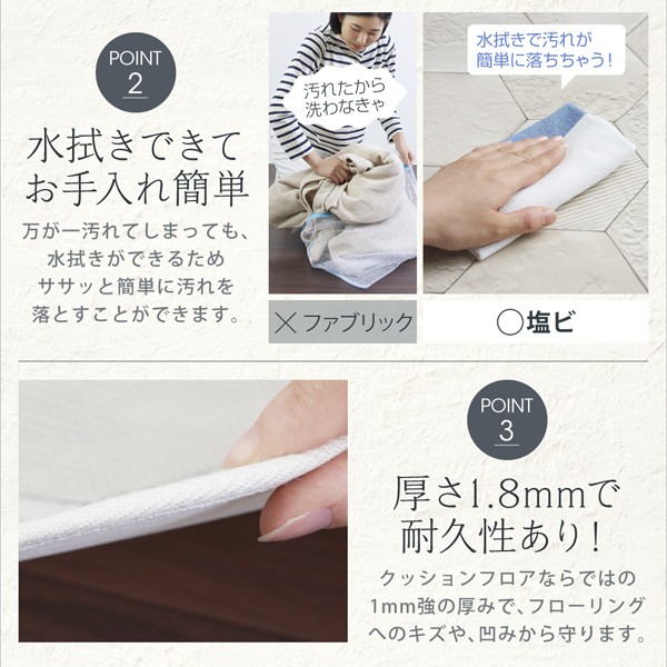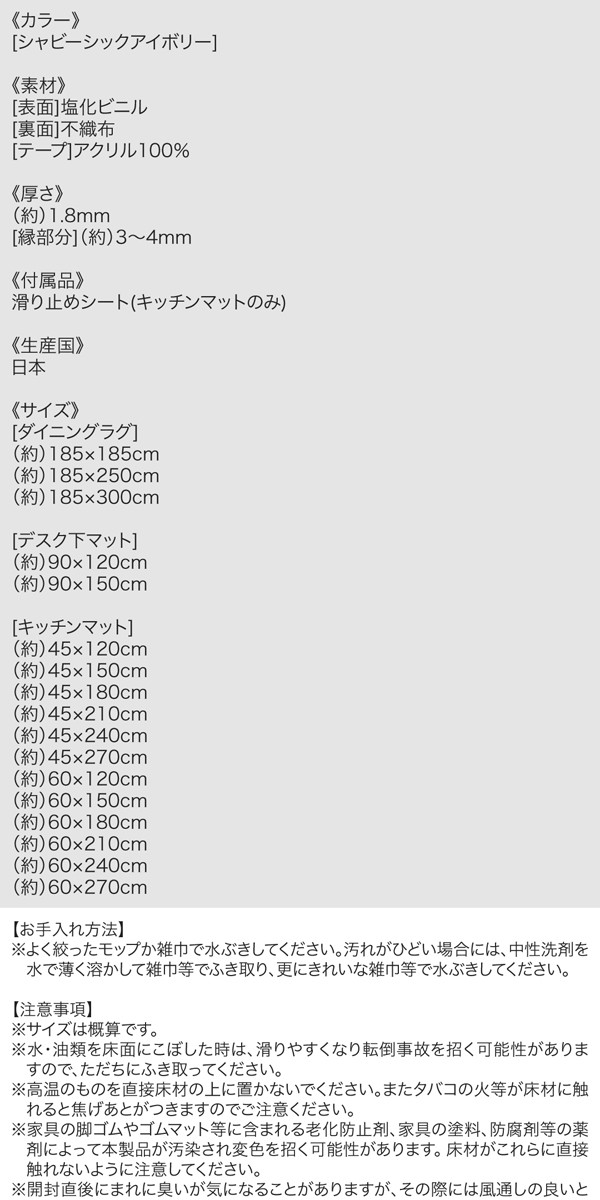 ※同じ場所で長時間敷いたままにしますと、床面に裏面の樹脂が付着する恐れがあります。時々使用場所を変えてください。