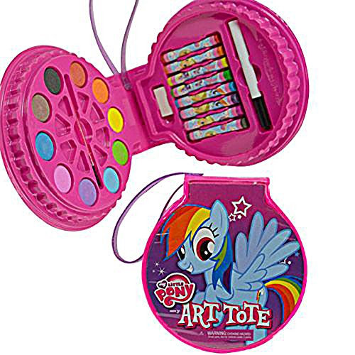 -. Feature : My Little Pony Take-Along Circle Art Case Art Tote / 20 piece art set / includes : 10 paints, 8 crayons, 1 brush, 1 marker and 1 eraser / licensed product