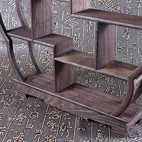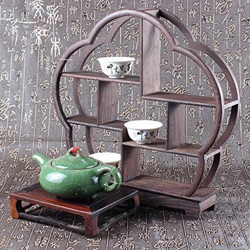 QHYT Teaset Display Stands Tea Cup and Saucer Display Stand Wenge Wood Plum Blossom Shape