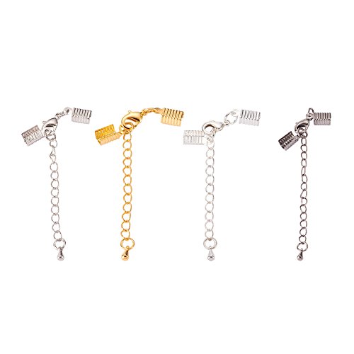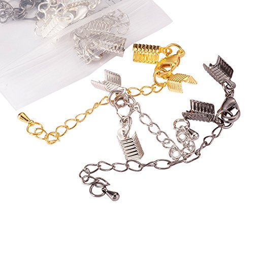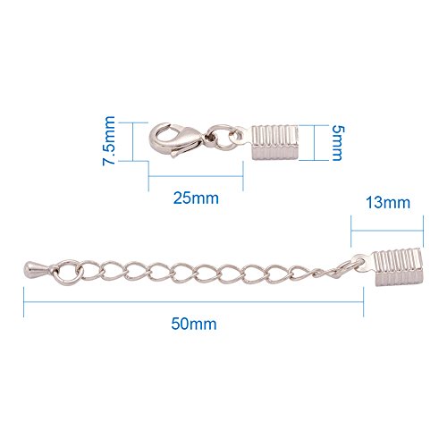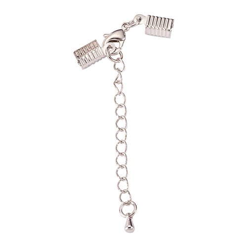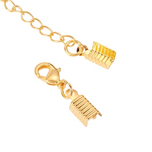 Pandahall 10pcs Brass Cord Ends with Lobster Claw Clasp Cord Crimp Extender Chains DIY Jewelry Findings