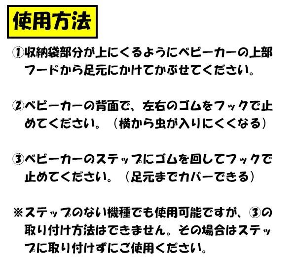 | 取り付け・取り外しが簡単なベビーカー用虫よけカバー! |