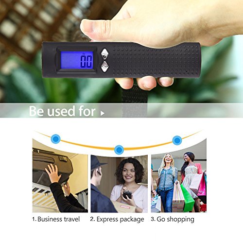 Luggage Scale: High-accuracy readings for hefty weights capacity: 110lb/50kg.Fast and accurate weigh with lb/oz/kg/g units of measurement. You can avoid the overweight luggage fees. Tare and auto-off functions. Hold and Low Battery Indicator