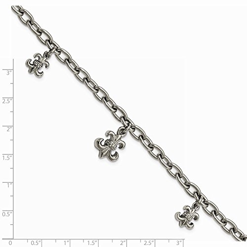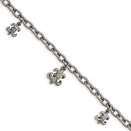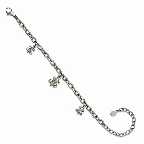 Stainless Steel Polished Fleur de Lis with 3 inch ext Bracelet 7" - with Secure Lobster Lock Clasp