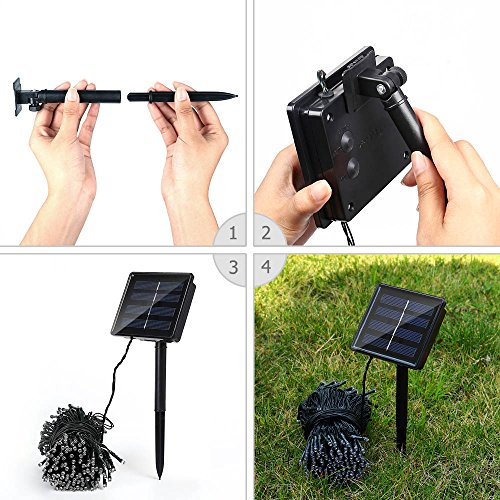- Solar Powered Christmas Lights: 200 bright blue LEDs on the 72ft light strand (6.5ft lead cable included), powered by built-in 1800mA NI-MH batteries