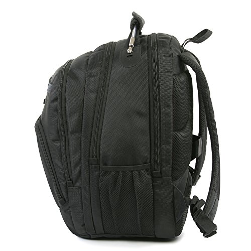 -. Feature : Laptop backpack made with 1680 denier ballistic nylon for great durability. / Full opening comparment fits up to most 15" laptops. Includes padded tablet compartment. / Large main compartment for files, folders, and other office documents. Size zippered pocket for small accessories like wallet, keys, or receipts. Three accessory zippered pockets. / Padded top handle for comfort. Mesh water bottle pocket. Padded back and shoulder straps for comfort. Includes pass through strap to attached to lage handle. / Internal organizer for notepads, pens, business cards and other supplies.