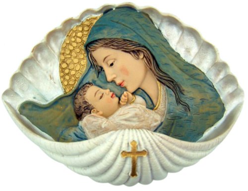 A Mother's Embrace Madonna and Child 6 Inch Resin Holy Water Font for Home or Church