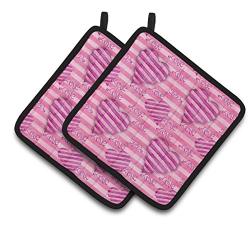 Caroline's Treasures BB7566PTHD Watercolor Hot Pink Striped Hearts Decorated Pot Holder, 7.5" x 7.5", Multicolor