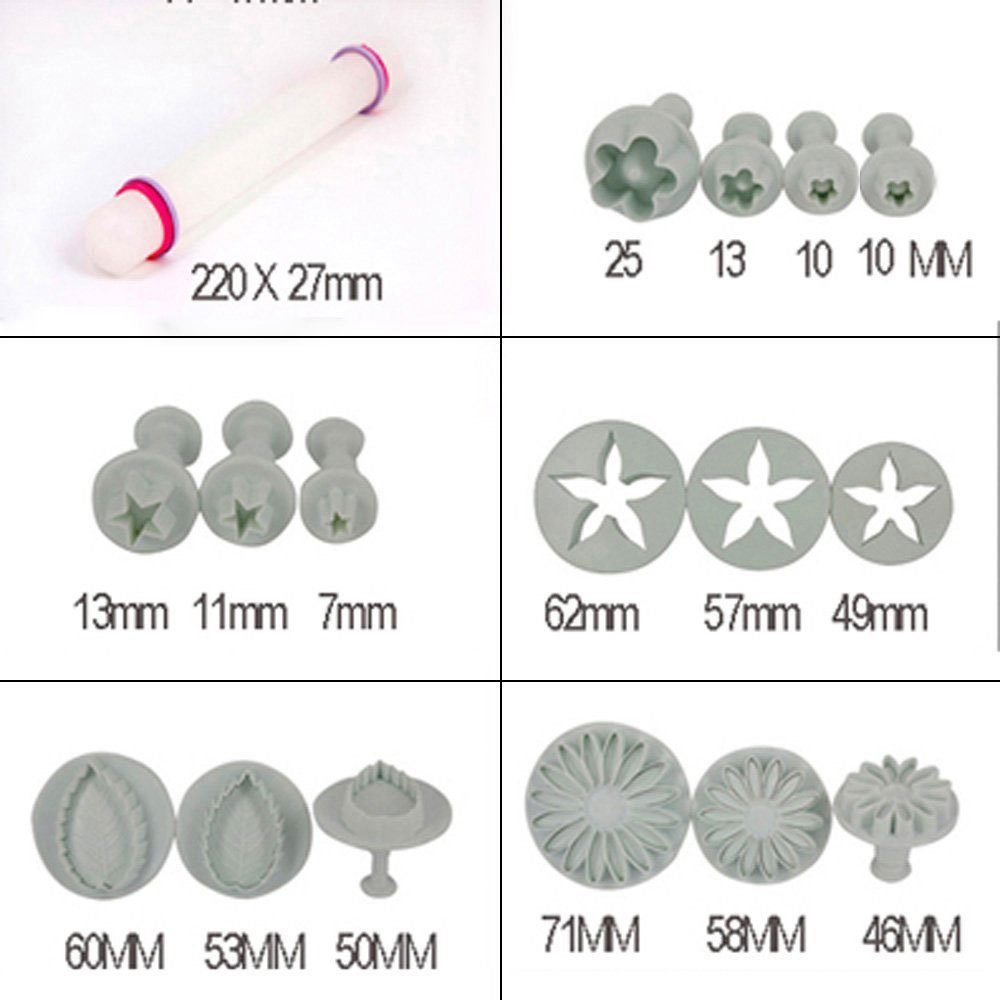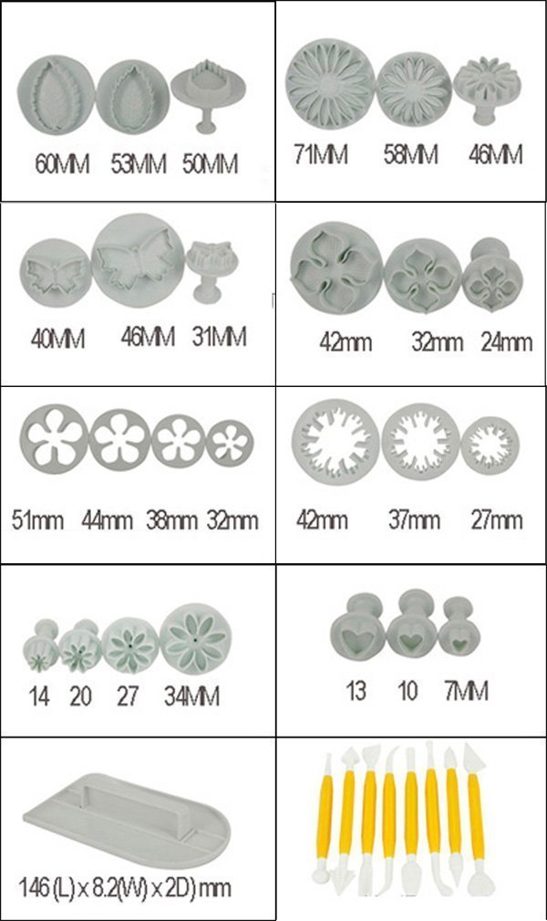 UTOKY Catalina cake tools flower fondant cake mold icing plunger cutter tool 14 set (46 pieces)