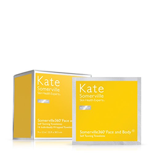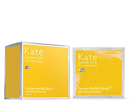 Somerville360 Face and Body Self Tanning Towelettes by Kate Somerville are self tan towels formulated to give you a natural-looking tan in just 2 to 4 hours. Easy to apply and containing a self-tanning lotion that wipes on evenly, these moisturizing tan towels leave you with a gorgeous streak-free, and simply radiant tan. Get a healthy and glowing tan with Somerville360 Face and Body Self Tanning Towelettes made with an advanced formula to gradually darken, providing a complimentary color to suit each person's skin tone perfectly. Your tan from these self tanning towelettes dries quickly, and it doesn't stain sheets, clothing, or towels. Made with Calming Cucumber to soothe and refresh, Vitamin E to condition skin, and a DHA-safe and paraben-free coloring agent, you enjoy a natural and sun-kissed look the same day you apply your Somerville360 Face and Body Self Tanning Towelette.Feature