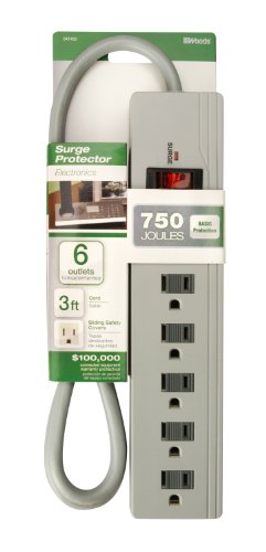 Woods 041452 6-Outlet Surge Protector with 3-Foot Cord, 750 Joules of Protection