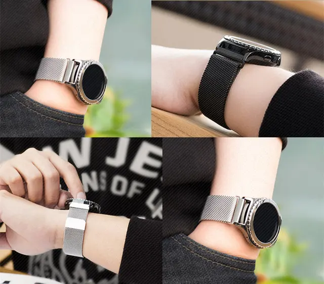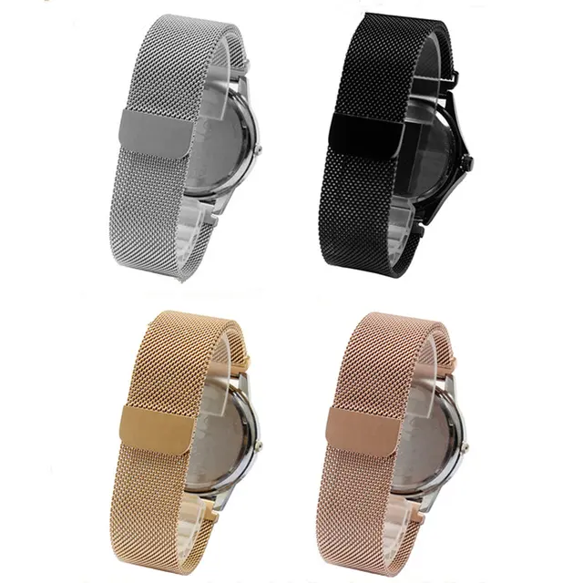 | [해외]16 18 20 22 미리메터 남성 레이디 실버 블랙 골드 로즈 골드 메쉬 Milanese 루프 스틸 팔찌 손목 시계 밴드 스트랩 벨트 자기 엔드 |