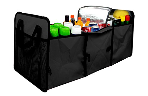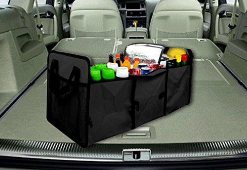 Everoasis Auto Trunk Organizer, Collapsible Car & SUV Cargo Organizer with Cooling and Insulation Compartment for Car Organizing Shopping Camping Picnic and Long Trip, Sturdy and Flexible (Black)