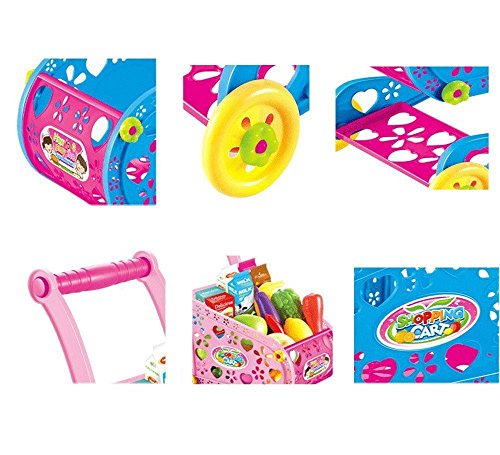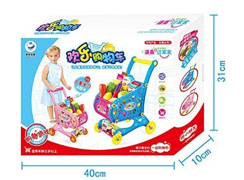Product Description shopping cart size : 35*23*48cm Design with two levels, so it has plenty of space Send lovely stickers ,your baby could DIY shopping cart 9 kinds of fruits