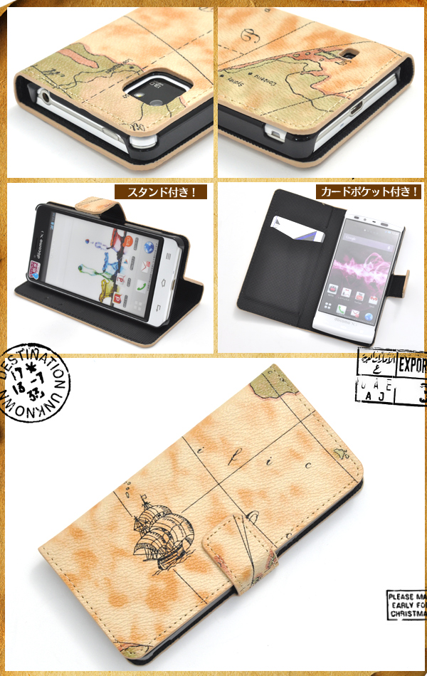 スタイリッシュな地図デザイン!Optimus it L-05E用ワールドデザインケースポーチ