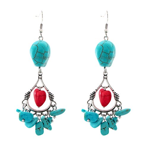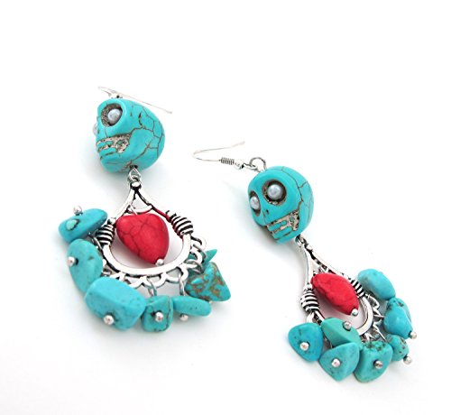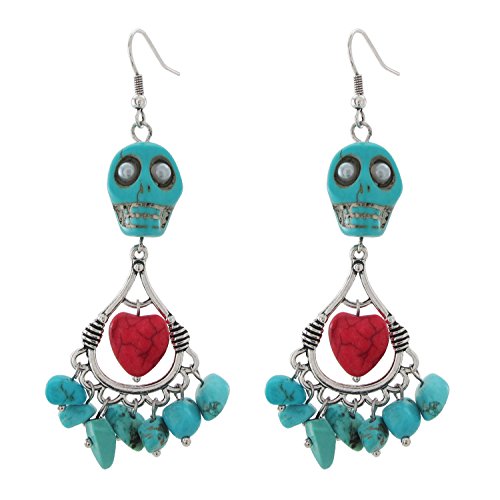 DaisyJewel Day of the Dead Turquoise Sacred Heart Skull Chandelier Dangle Earrings - Celebrate the Remembered in Style!