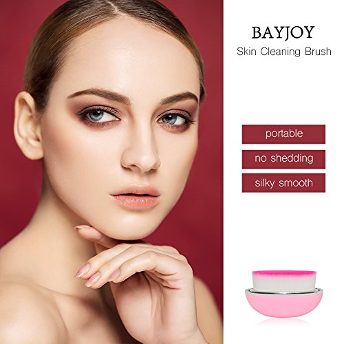 BAYJOY Facial Brush with Case Skin Cleansing Tool Mini Portable Face Scrubber for Daily Deep Cleaning with One Gift of Makeup Sponge Pink Color
