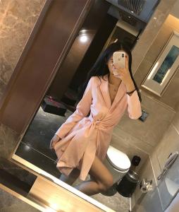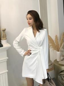 ミニ丈ワンピース フレアスカート 巻きスカート フレアスカート ウエストマーク 長袖 ドレス Vネック 綺麗め 大人ワンピース