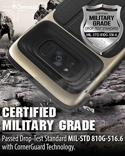 Made from high-quality polycarbonate (PC) and shock-absorbing thermoplastic polyurethane (TPU), this Galaxy S8 Plus wallet case has been drop tested to meet MIL-STD 810G-516.6, surviving 26 drops from 4 feet high. The TPU layer on the inside of the case ensures your cards remain scratch-free.
