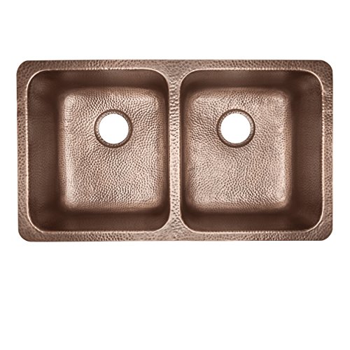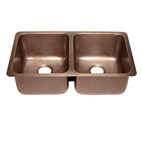 Sinkology SK204-32AC Rivera Luxury Series Undermount Handmade Pure Copper Double Bowl Kitchen Sink, 32-1/4", Antique Copper