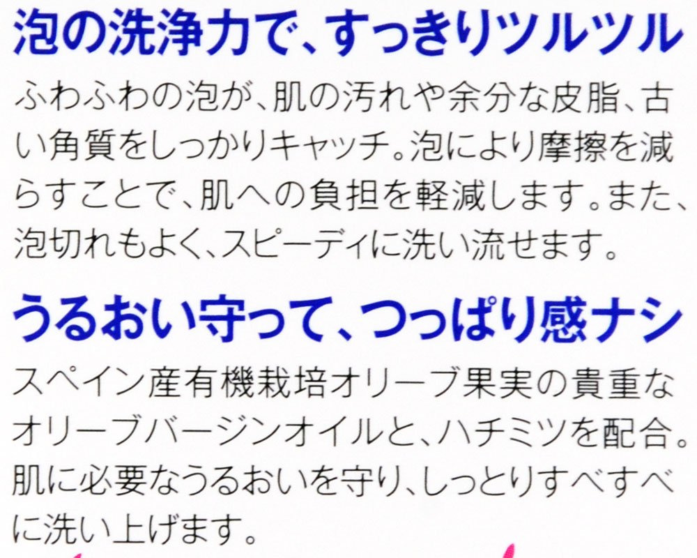 I do not have tight washing but I like the feeling of cleanness after cleansing, I have patronized for a long time. Fine bubbles that smell like a little honey are pleasant. I normally purchase a large size, but I purchased this size for carrying around when traveling or returning home. But the moist, for those who dislike the type of soap it is not possible to be slimy feeling forever rinse is especially recommended.