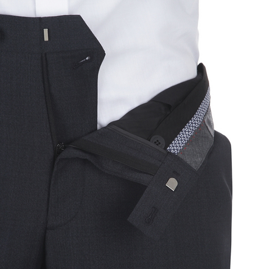 - 잔조직 텍스쳐 디자인의 클래식한 남성 수트 팬츠.