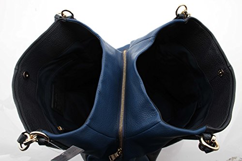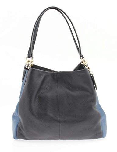 -. Brand : -. Color : Midnight -. Department : womens -. EAN : 0889532069651 -. Feature : Rich pebbled leather; Clasp closure / Accented with gold-tone hardware / Interior fully lined with 2 slip pockets and a zippered pocket / Measures approximately 12.5 L x 10.5 H x 5 W inches / Handles have a 7 inch drop; No dust cover -. PackageQuantity : 1 -. ProductGroup : Shoes -. ProductTypeName : HANDBAG -. Title : Exotic Trim Leather Phoebe Shoulder Bag (Midnight) -. UPC : 889532069651