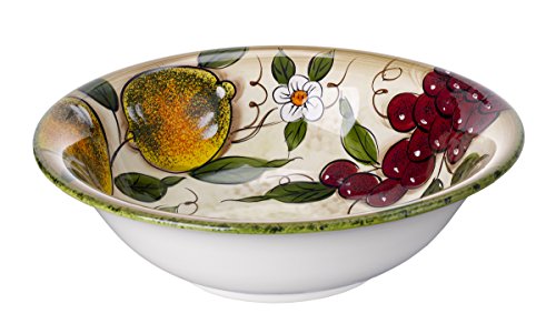 Original Cucina Italiana Ceramic pasta Serving Bowl, Soup Bowl, Soft White, Fruit Print