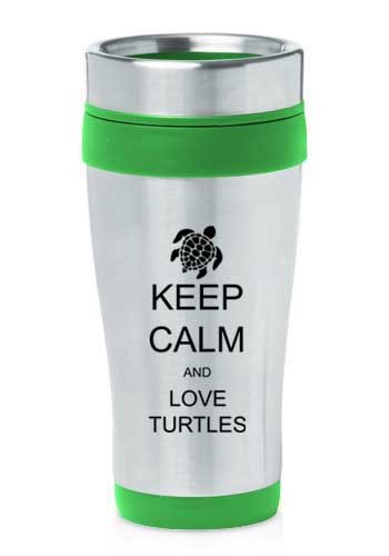 Green 16oz Insulated Stainless Steel Travel Mug Z460 Keep Calm and Love Turtles
