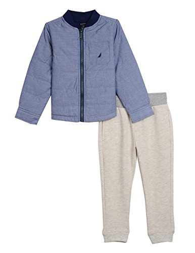 Zip up long sleeve chambray shirt jacket Chest pocket Pull on jogger pants with side pockets Two piece set Brand : Nautica Item model num : N230G27Q EAN : 0887346541264 Package Dimensions(LxWxH) : 3x3x3cm ; 454 g