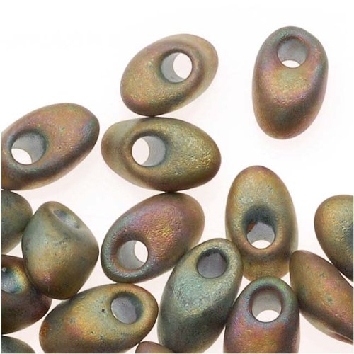Miyuki Long Magatama Seed Beads - 4x7mm 'Matte Metallic Khaki Iris' 8.5 Grams