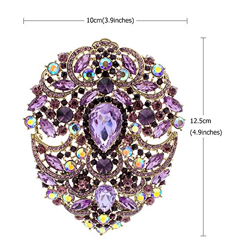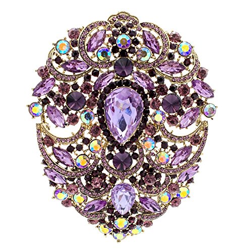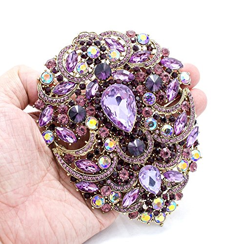 SEP 4.9IN Rhinestone Crystals Large Egg Shape Brooch Broach Pins Women Jewelry Accessories 4045 (Purple)