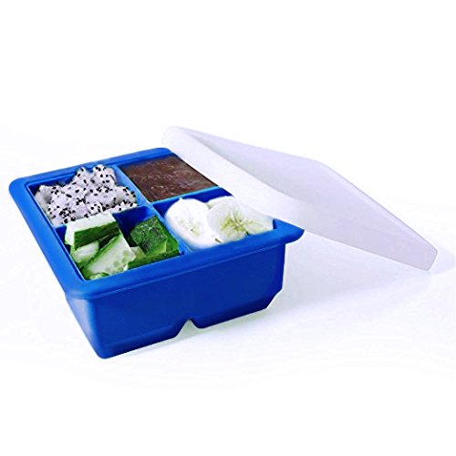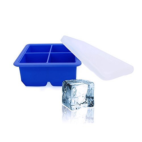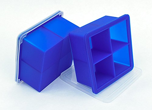 Bella Amazing Lidded Ice Cube Trays, Set of 2 Big Square Ice Cube Trays Molds with Covers. Create 2 Inch Ice Cubes Great for Spirits, Smoothies, and more. Stackable Perfect for a Small Freezer. (Blue)