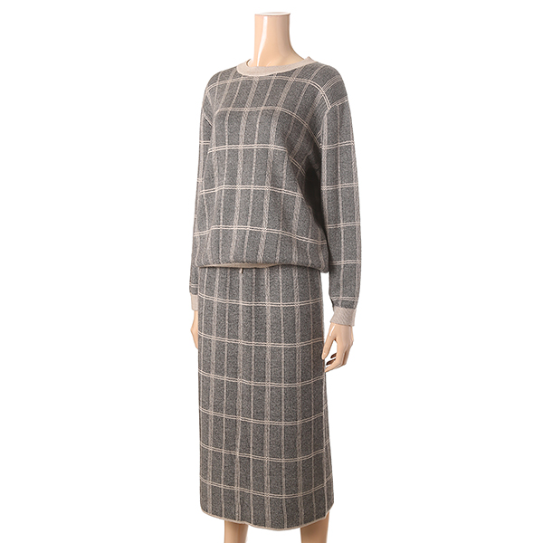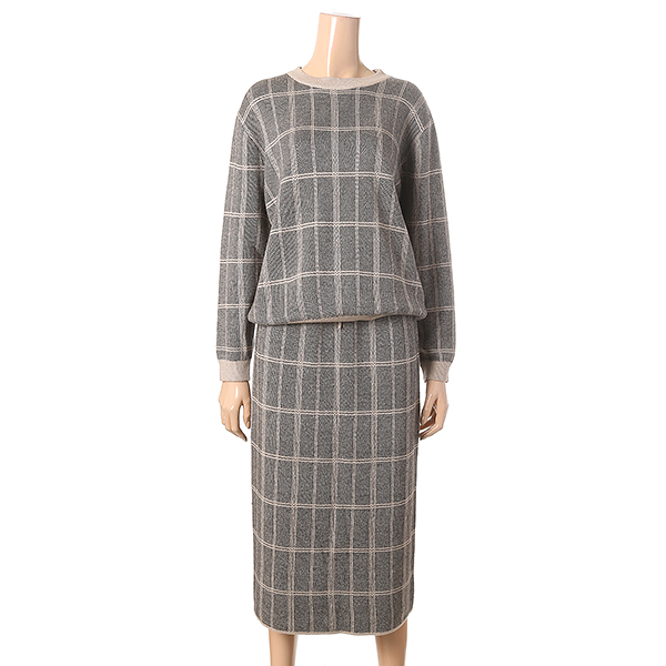 고급 울 소재의 체크 무늬가 돋보이는 투피스 입니다.