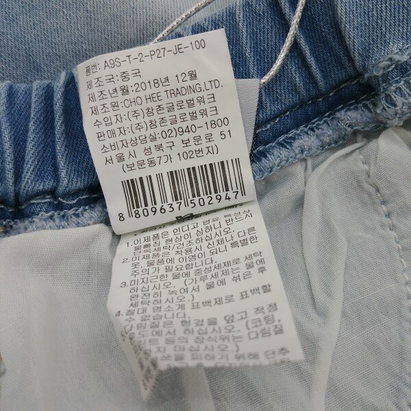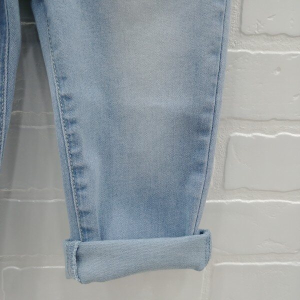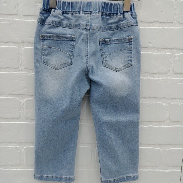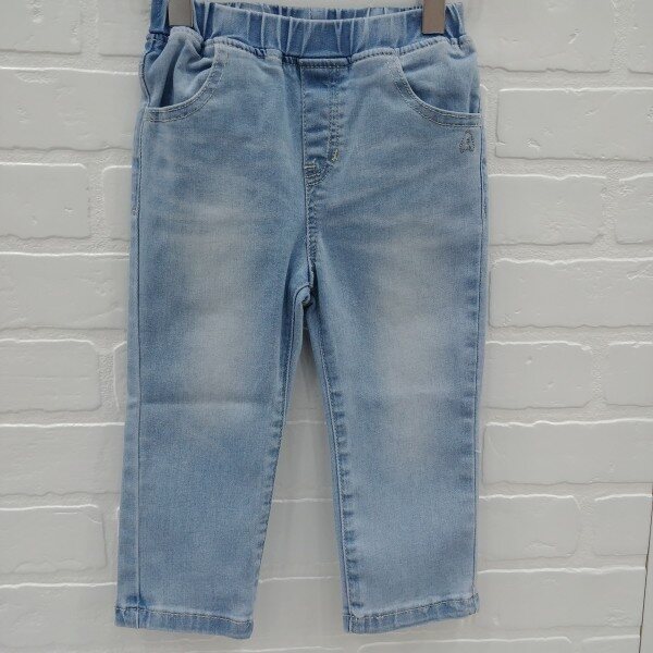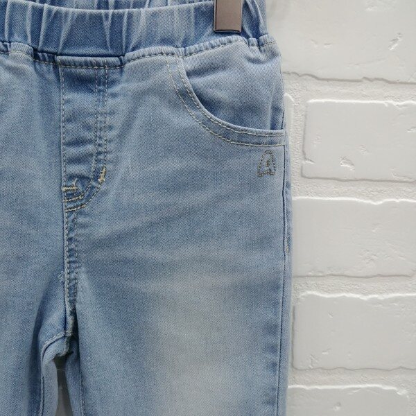 라이트한 컬러감의 일자핏 데님 팬츠. 런닝 스티치 자수로 포인트를 준 스타일.