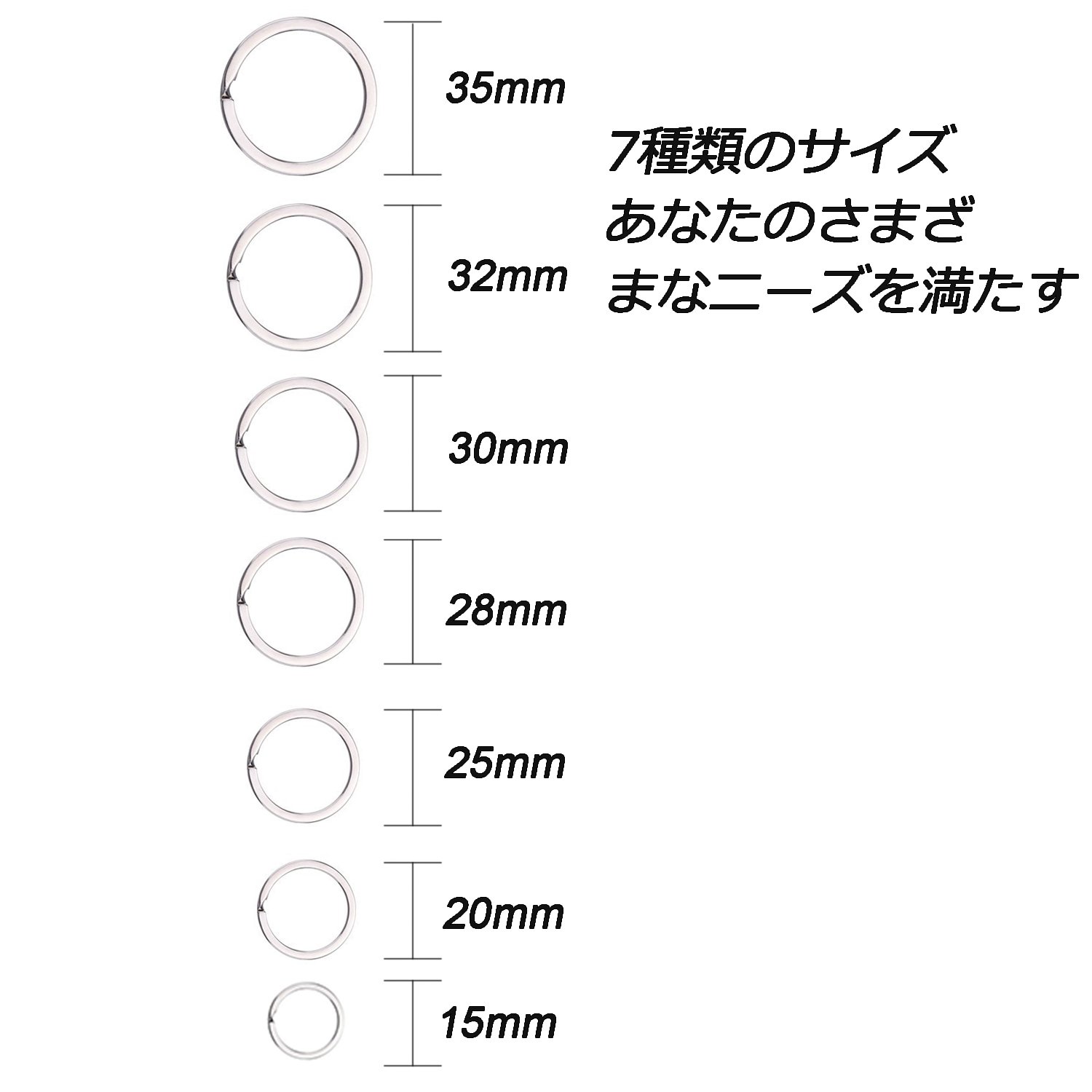 Flat key ring outer diameter 15 mm 20 mm 25 mm 28 mm 30 mm 32 mm 35 mm (each size 10)