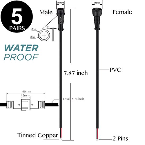 VIMVIP Male Female Plug 2 Pin LED Waterproof Connector Cable Black 5Pair 10Pieces