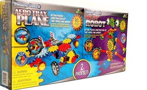 (TECHNO)/Construction, Blocks Models/Building Sets/DIRECT FROM USA/Techno Gears 2 Pack Set Aero Trax Plane Wacky Robot 80 Pieces Each