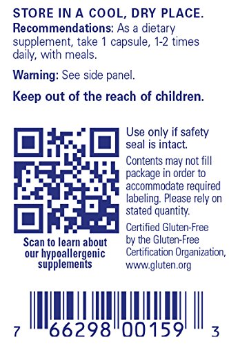 FREE FROM: Pure Encapsulations products are free from wheat, gluten, egg, peanuts, magnesium stearate, hydrogenated fat, artificial sweeteners and colors, and other unnecessary excipients. Any product containing ingredients derived from allergens, such as soy, dairy or shellfish is clearly labeled. * These statements have not been evaluated by the Food and Drug Administration. This product is not intended to diagnose, treat, cure, or prevent any disease.