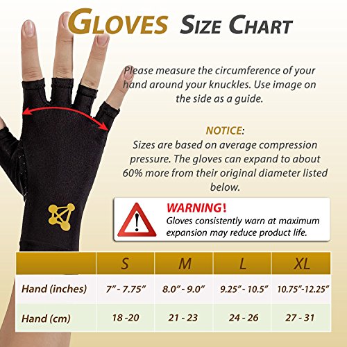 -. Feature : ✅ ACCELERATE REHABILITATION OF HAND JOINTS - with their gentle compression our copper Infused gloves help you alleviate symp of arthritis, RSI, carpal tunnel, tendonitis, thumb stiffness, muscle fatigue and get the support you need, over a long period of time, allowing you to perform at your peak in any situation - open fingertips, fingerless ✅GUARANTEED To Speed Up Recovery for Men & Women / ✅ PROMOTE BLOOD FLOW AND CIRCULATION - provide mild squeezing for warmness and enhance blood moving through your hands. Remove stress and stimulate every joint. / ✅ ANTI-ODOUR - active Copper is extremely efficient in eliminating odors; made of 88% TOP QUALITY COPPER Infused Nylon, we guarantee you will have the HIGHEST CONTENT available [fabric maintain its characteristics after 40 times wash, proved by international testing report] / ✅ THERMAL STABILIZER - breathable high performance fabric keeps an optimal joint temperature . Anti-Itch UPF 50+ material, it's ergonomically designed for full range of motion, superior comfort and mobility without chafing & irritating. Perfect for any Tommie, Dick, and Harry! / ✅ MOISTURE WICKING DESIGN - easy to wear, our light, soft unisex gloves keep you dry and comfortable even with long use and make it easier to be worn all day throughout the night. ✅IDEAL GIFT for Black Friday, Cyber Monday, Birthday, Prime Deal Day or Christmas