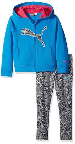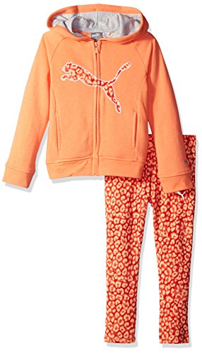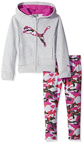 PUMA Little Girls' 2 Piece Zip up Hoodie and Pant Set, Light Heather Grey, 4