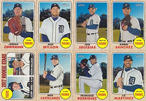 - Detroit Tigers 2017 Topps Heritage Baseball complete mint basic 14 card team set; it was never issued in factory form. Cards included are Miguel Cabrera, Victor Martinez, Jordan Zimmerman, Jose Iglesias, Anibal Sanchez, Nick Castellanos, Francisco Rodriguez, J.D. Martinez, James McCann, Tyler Collins, Andrew Romine, Alex Wilson, a Rookie Stars card of Jacoby Jones and Dustin Molleken and a Tigers Team Card.