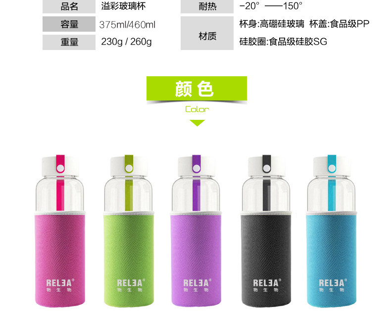 物生物溢彩玻璃杯 创意带盖车载水瓶 便携花茶杯男女夏天水杯子