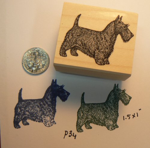 -. Title : Scottie Dog Rubber Stamp Wood Mounted P34