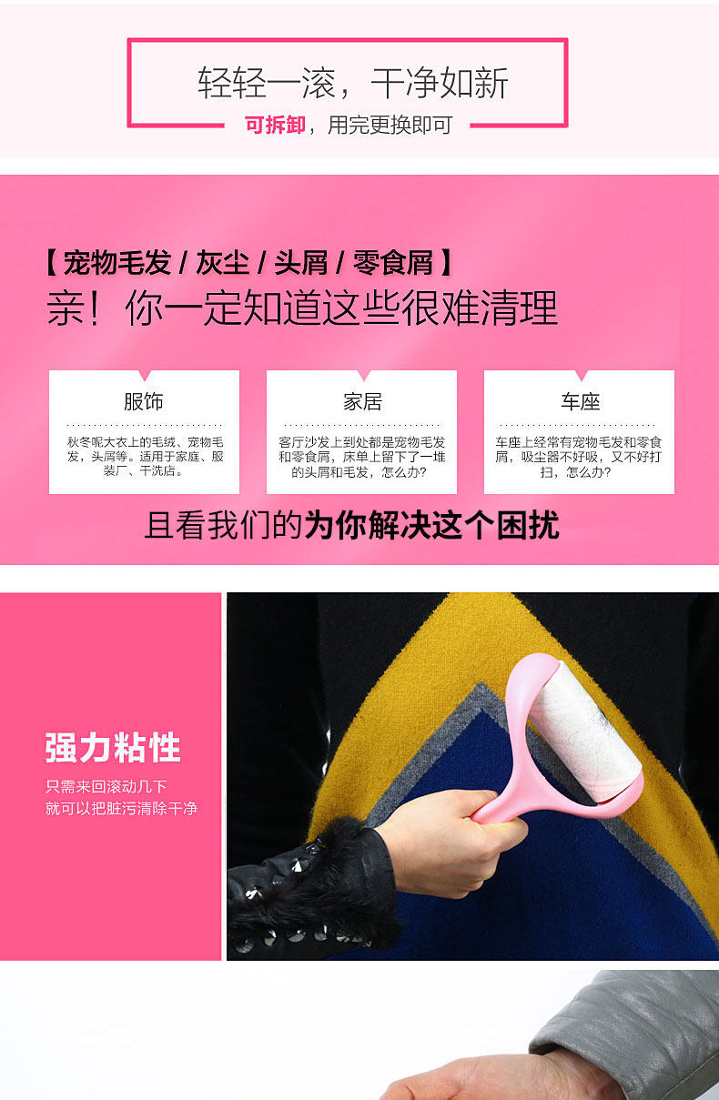 可撕式衣物粘毛器衣物毛衣除尘滚衣服粘毛滚去毛纸刷子