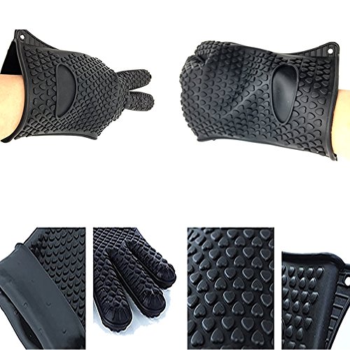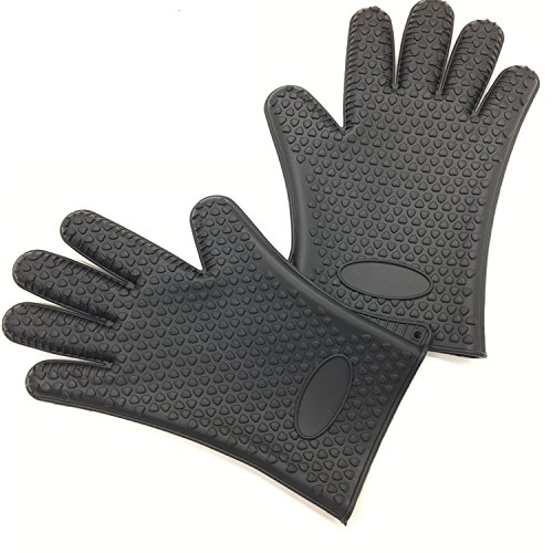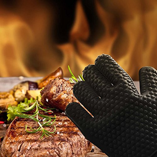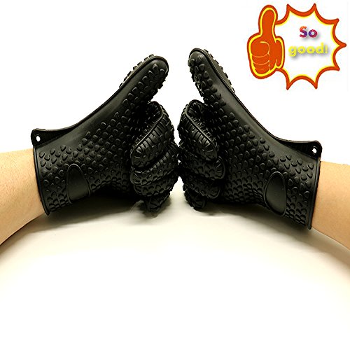 HUELE Set of 2 Silicone Oven Gloves,Silicone Kitchen Gloves,Heat Resistant Oven Mitts ,Black