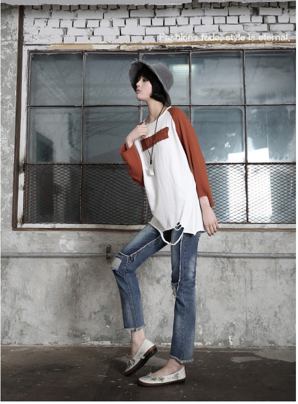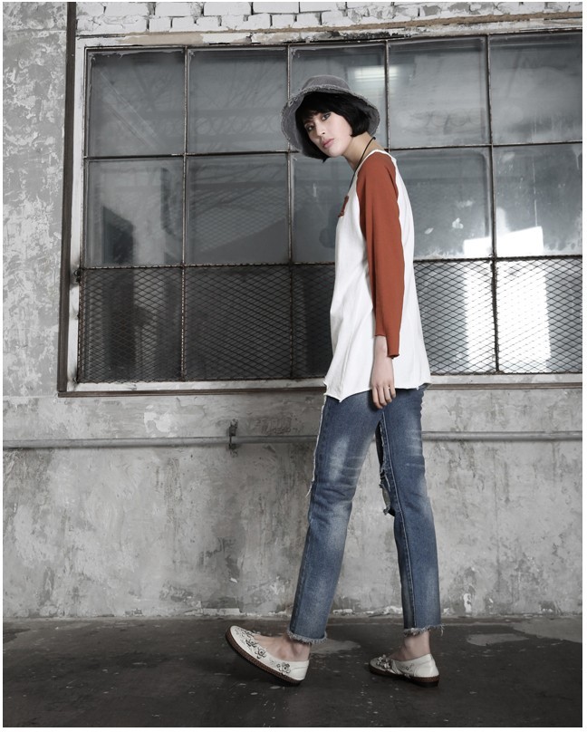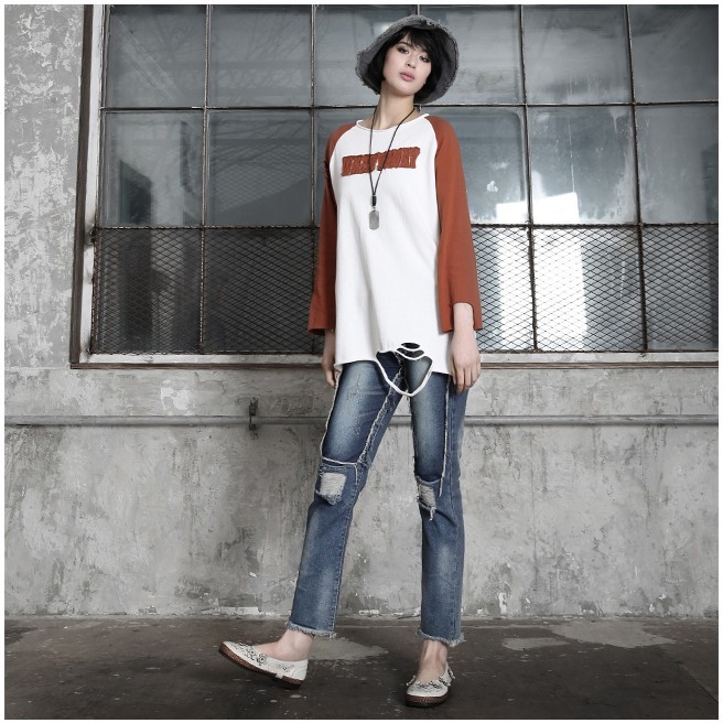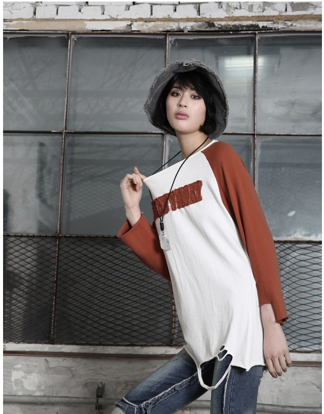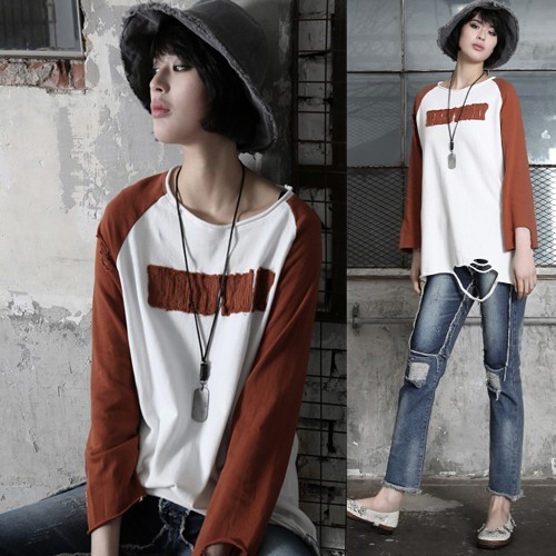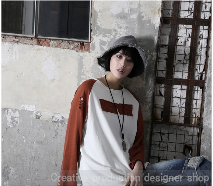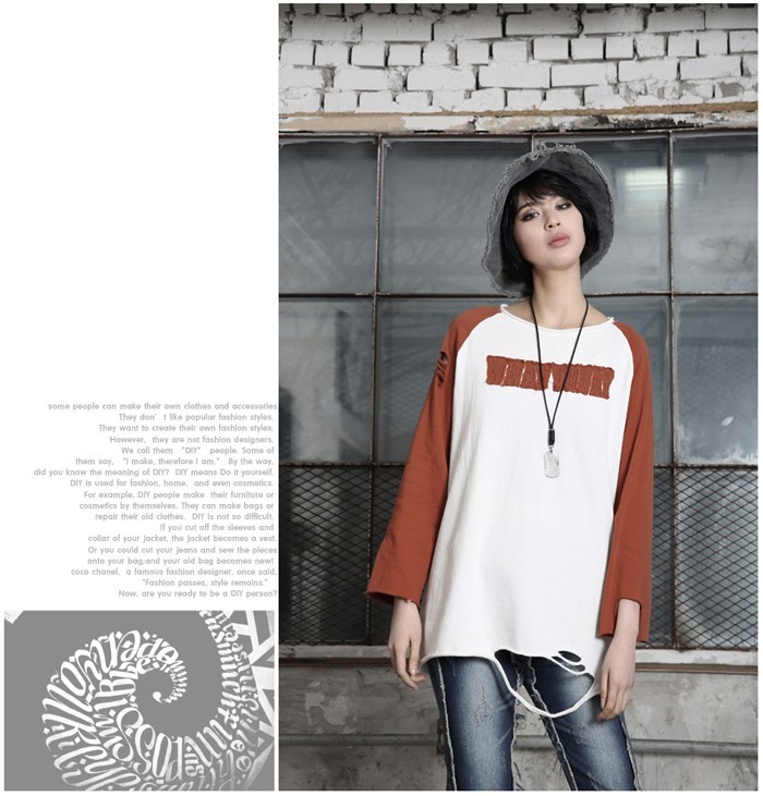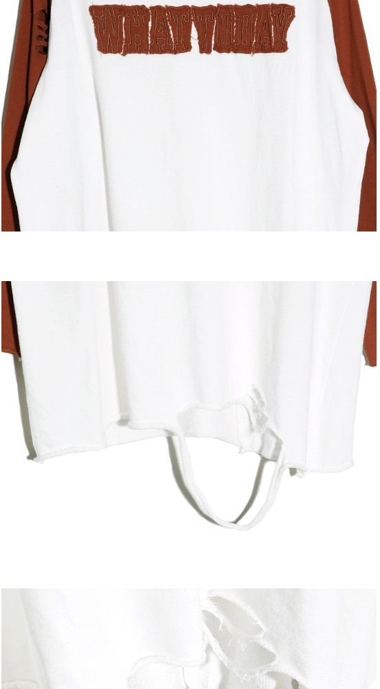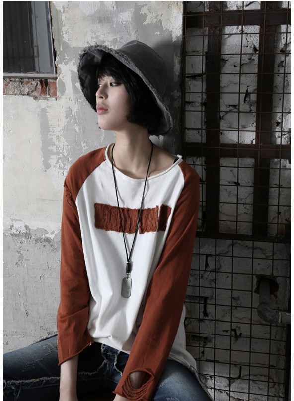 商品名:Tシャツ レディース トップス 長袖 ラグラン ダメージ 秋 冬 2017 モード系 個性的 40代 ファッション