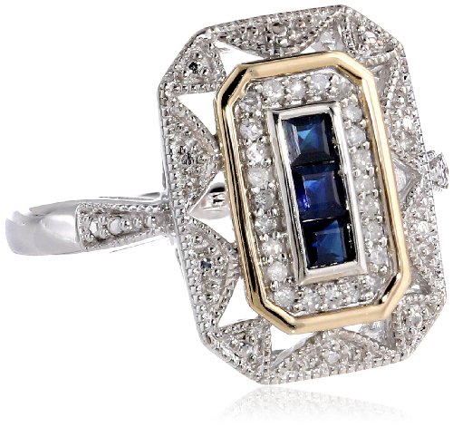 - Title : S&G Sterling Silver and 14k Yellow Gold Blue Sapphire and Diamond-Accent Art Deco Style Ring (0.11 cttw, I-J Color, I3 Clarity), Size 7